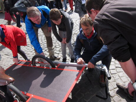 Es gabe auch was zu gewinnen! Ein Fahrrad im Wert von 1000€, gemeinsam finanziert von VCD, dobeq, Agenda Arbeitskreis und VeloKitchen. Dazu gab es einen Fragebogen zum Thema Fahrrad und E-Bike, der es in sich hatte und doch einige bis zur Verzweiflung gebracht hatte.